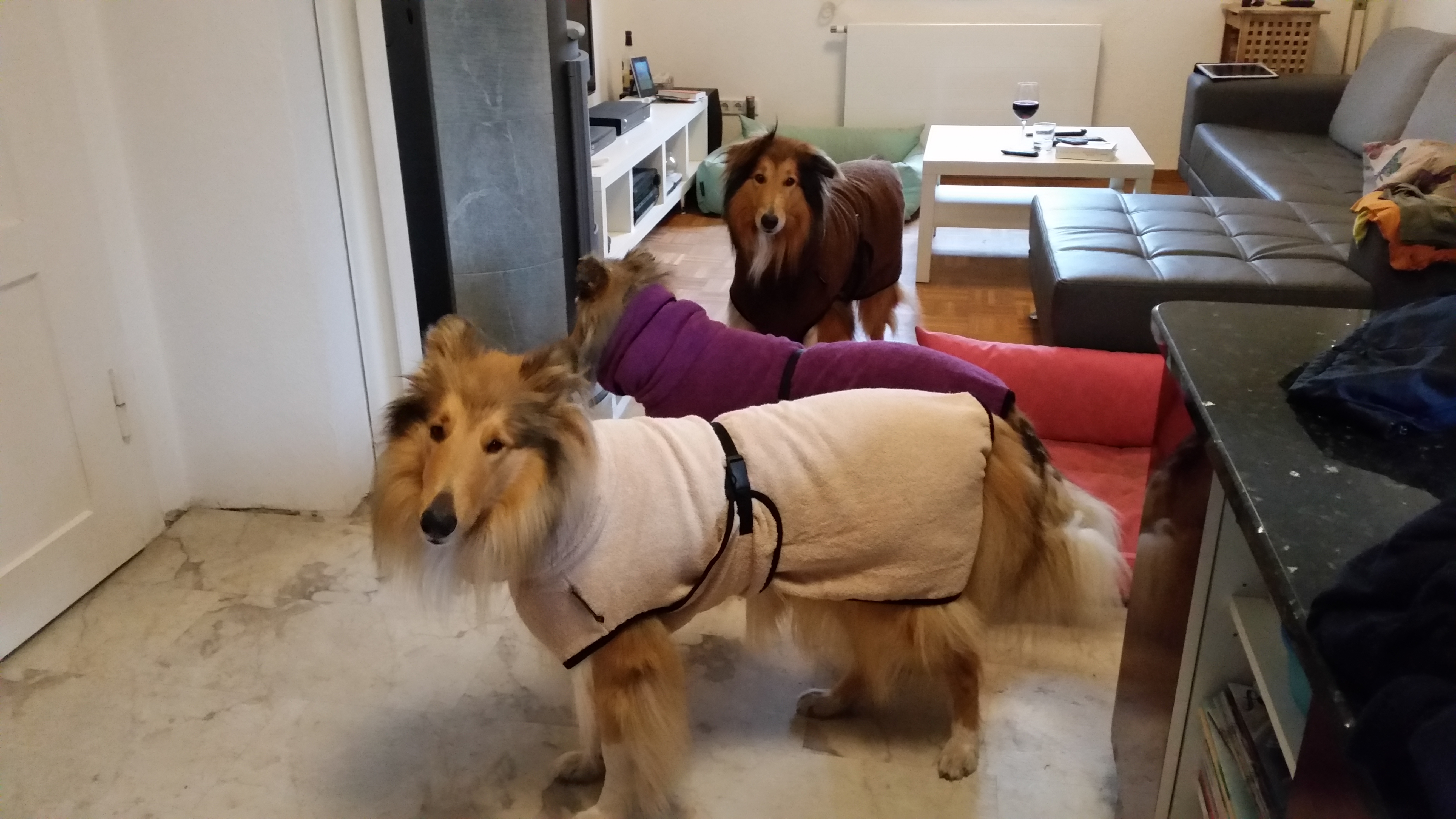 Es ist angenehm. Die drei Fellnasen durchweicht einfach, „einzupacken“. Nach ca. 15-30 Min. sind die Fellnasen gut abgetrocknet. Der „Geruch“ Nasser Hund hält sich in Grenzen. Und im Haus bin ich an Regentagen nicht wie verrückt am Wischen. Die Fellnasen lieben die Bademäntel und sind dabei Tiefenentspannt.