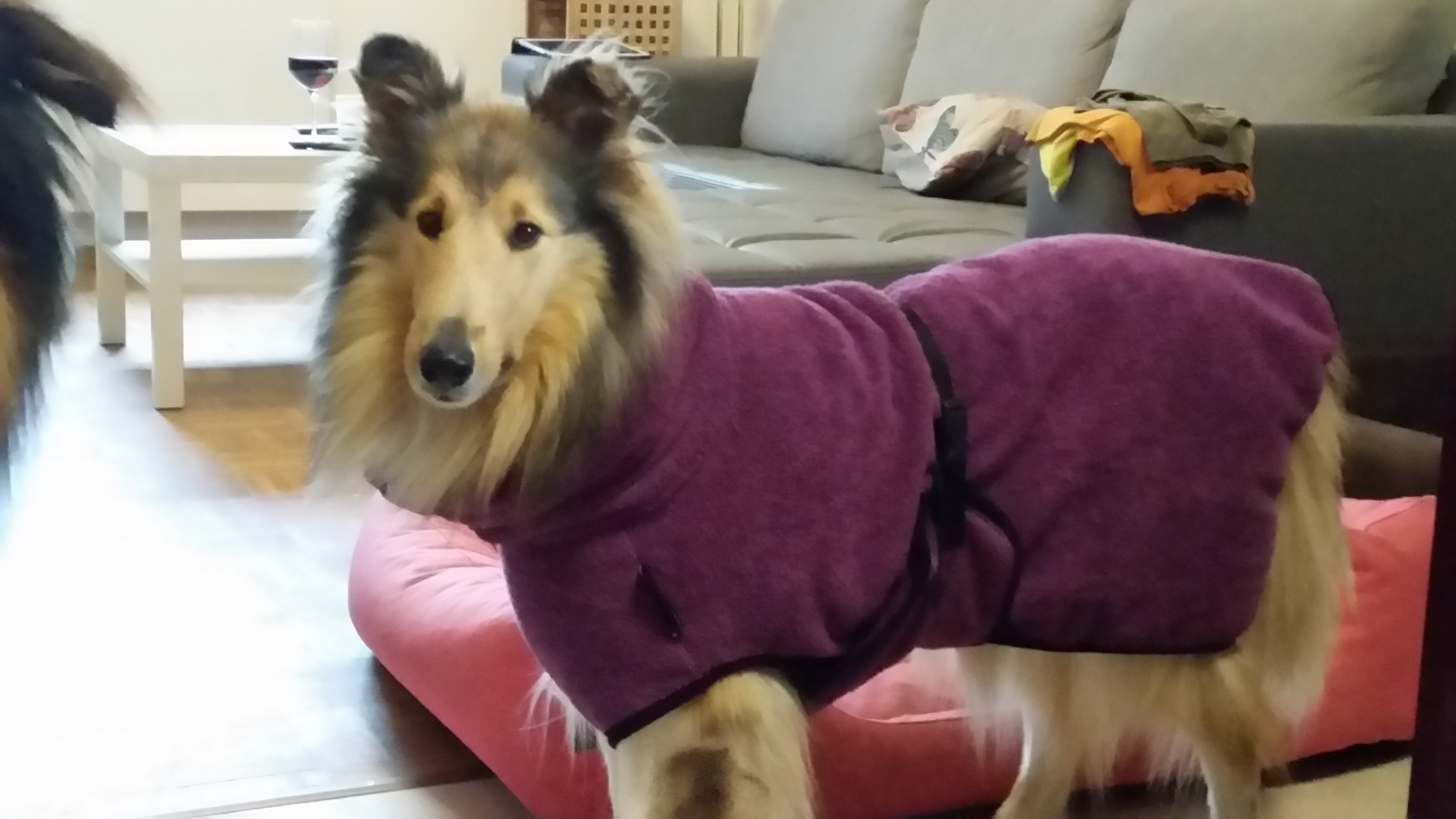 Wie es nun der Zufall so will, hat ihr vor Ort ein kleiner zauberhafte Hundeladen aufgemacht. Klein aber fein. Ist hier das Motto. Und bei der Eröffnung habe ich unter anderem die Hundebademäntel gesehen. Ein paar Tage später bin ich dann mit den drei Fellmäusen zur Anprobe hin. Mein Mann hat erstmal nur seinen Kopf geschüttelt.
