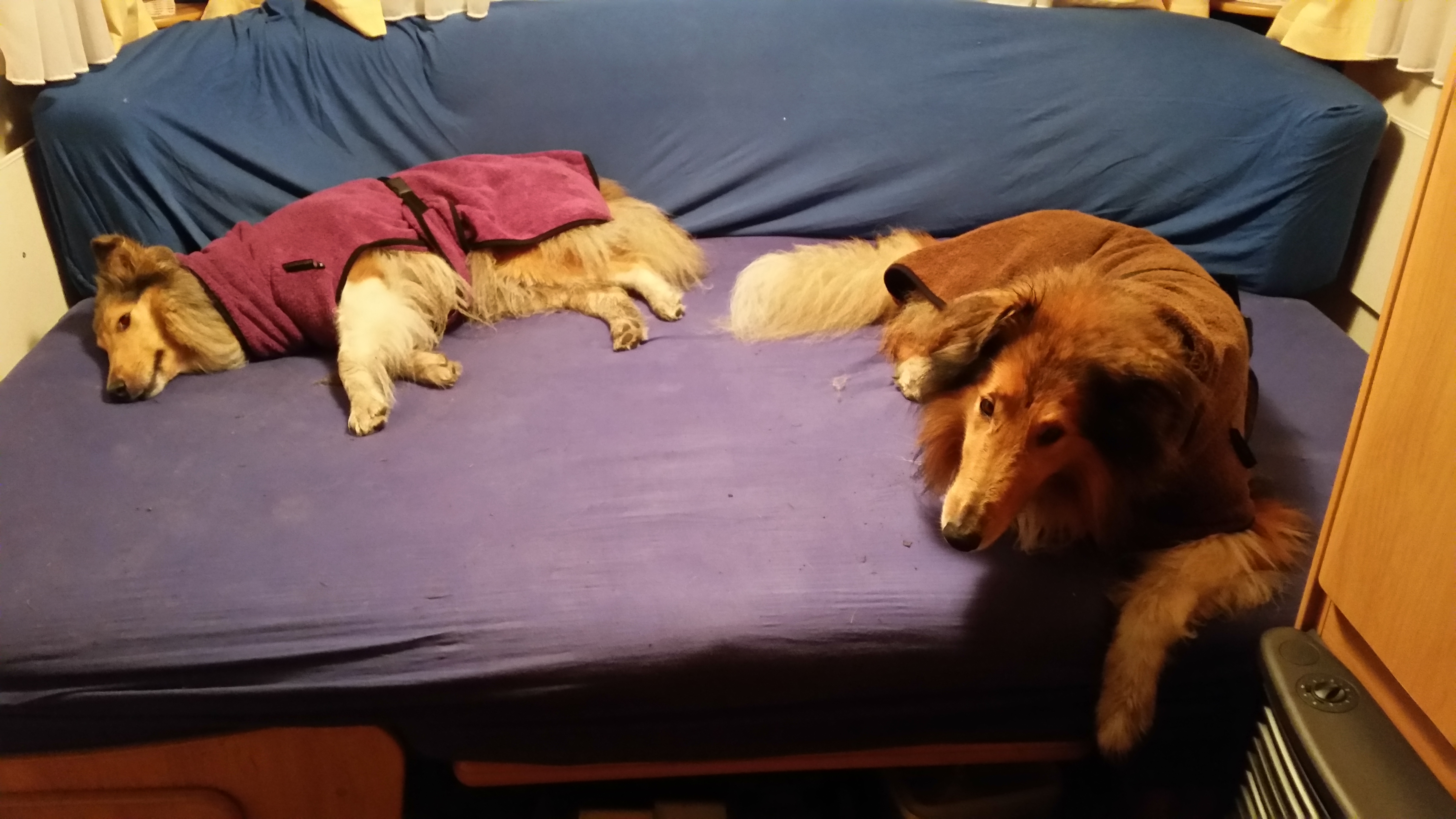Da wir ja auch immer mal wieder mit dem Wohnwagen unterwegs sind und ich mir das auf kleinsten Raum, via Regentagen gar nicht vorstellen mochte. Ging ich im Internet auf der Suche. Und erfuhr von Dauercampern und viel Campern von den sogenannten Hundebademänteln. Im Internet geschaut aber die Preise für eine Maßanfertigung waren weit von Gut und Böse. Also legt ich den Gedanken erstmals Akt Acta. Dachte ich…